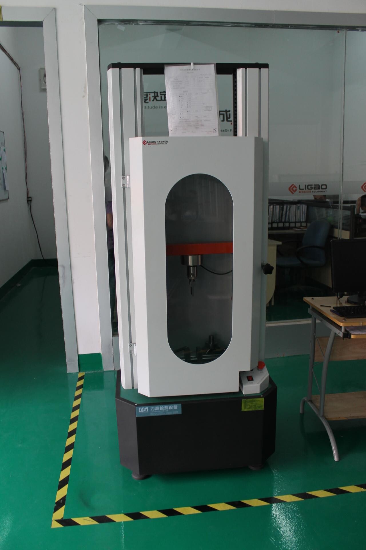 1、拉力試驗機的力量值校正:進入計算機程序后于打開校正界面,按測試開始,取一標(biāo)準(zhǔn)重量砝碼輕掛于上夾具連接座,記錄計算機顯示力量值,并計算與標(biāo)準(zhǔn)重量砝碼之差,誤差應(yīng)不超出±1%。